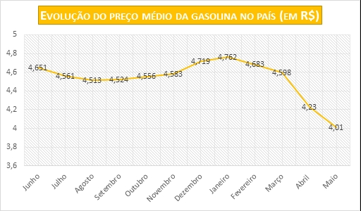 Preço da gasolina cai 5,15% em maio