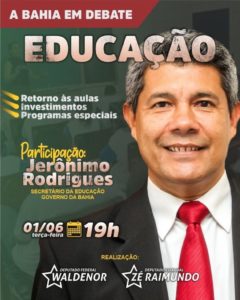 O projeto “A Bahia em Debate”, realizado pelos deputados petistas José Raimundo Fontes (estadual) e Waldenor Pereira (federal), receberá, nesta terça-feira (1º), o secretário da Educação do Estado da Bahia, Jerônimo Rodrigues Souza.