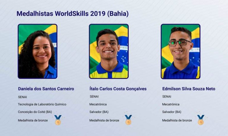 Das 13 medalhas conquistadas pelo Brasil na WorldSkills 2019, competição conhecida como o mundial das profissões, três foram obtidas por estudantes da Bahia. Daniela Carneiro, de 22 anos, de Conceição do Coité, e os soteropolitanos Ítalo Gonçalves, de 20 anos, e Edmilson Silva Souza Neto, de 21 anos, levaram bronze no torneio.