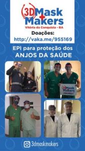Com aumento da demanda e a falta no mercado de máscaras de proteção para os profissionais de saúde que estão na linha de frente de combate ao novo coronavírus (COVID-19) juntaram um grupo de pessoas em Vitória da Conquista que criaram o 3D Mask Makers, um projeto formado por estudantes, pesquisadores e empresários para confeccionar máscaras faciais de proteção individual produzidas em impressoras 3D.