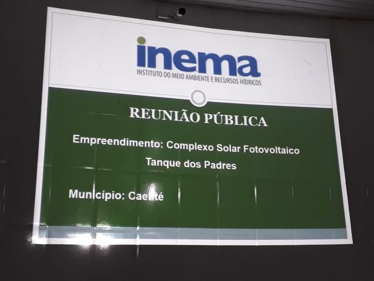 O Instituto de Meio Ambiente e Recursos Hídricos da Bahia (INEMA), realizou nessa quinta-feira (22/11), audiência pública no distrito de Maniaçu para tratar sobre o licenciamento do Empreendimento Complexo Solar Fotovoltaico Tanque dos Padres, para geração de energia proveniente da luz do sol, que será implantado em Caetité.