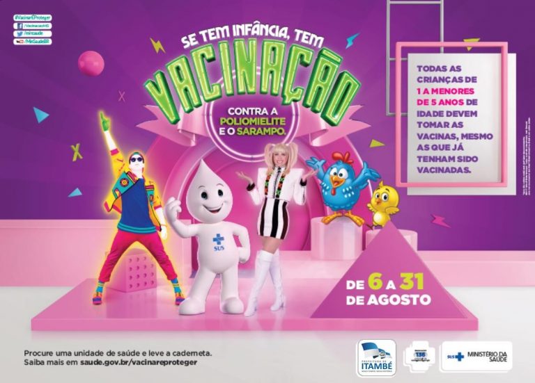 A partir desta segunda-feira (6), a Secretaria Municipal de Saúde de Itambé inicia a Campanha de Vacinação contra o Sarampo e a Poliomielite, também conhecida como paralisia infantil. A mobilização segue até o dia 31 de agosto. As vacinas estão disponíveis em todas as Unidades de Saúde da Família (USF) do município.