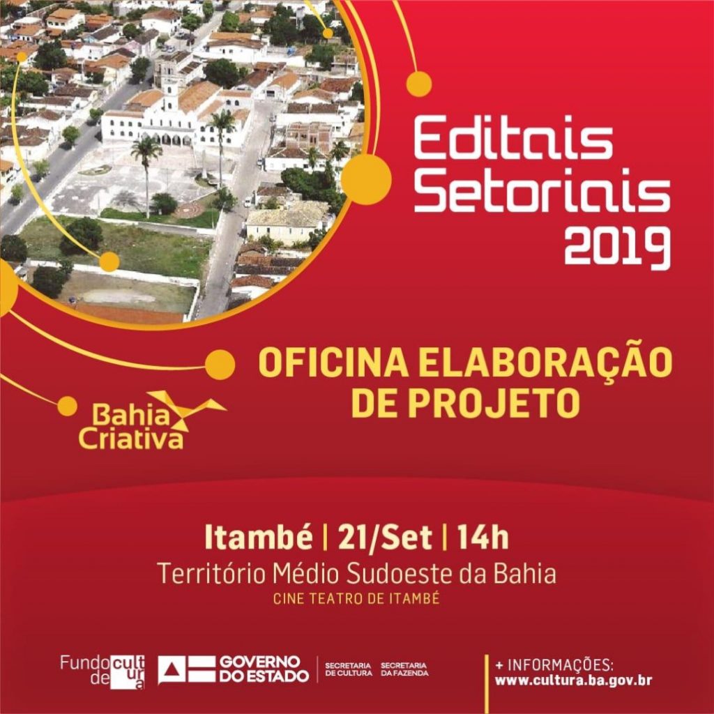 A Secretaria de Cultura da Bahia (Secult) e suas unidades vinculadas estarão percorrendo os 27 territórios de identidade do estado para apresentar os Editais Setoriais 2019 e realizar oficinas de elaboração de projetos.