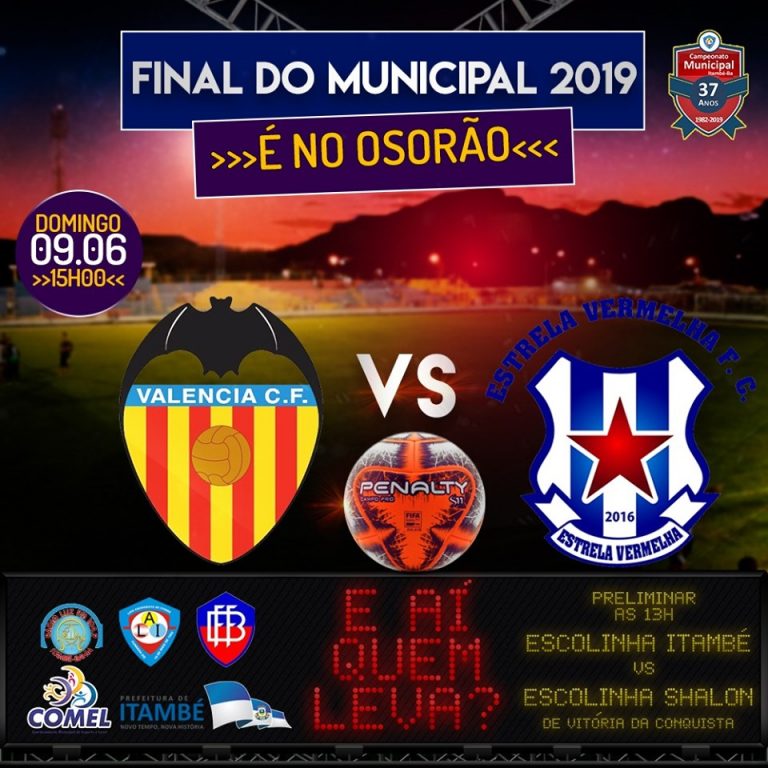 Tudo pronto para as emoções da grande final do Campeonato Municipal de Itambé 2019. Após uma excelente campanha no decorrer da disputa, os times do Valência e Estrela Vermelha vão decidir, neste domingo (09), quem leva o título desta temporada.