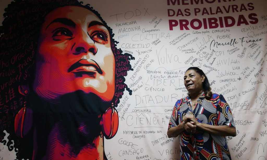 A advogada Marinete da Silva, 71 anos, mãe da vereadora Marielle Franco, assassinada em março de 2019, esteve no início da tarde desta sexta-feira (10) na sede da Empresa Brasil de Comunicação (EBC), em Brasília. Marinete visitou o Memorial das Palavras Proibidas, que tem um painel com a ilustração do rosto da filha.
