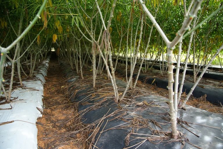 Os estudos, segundo ele, foram no sentido de identificar como a mandioca se comportaria plantada sob a cobertura, com e sem irrigação. “Vimos que o uso da cobertura plástica do solo proporcionou um aumento de pelo menos 13% na produtividade das raízes. E quando a tecnologia é utilizada juntamente com a irrigação, essa produtividade é ampliada em quase 90%”, afirma o estudioso. As pesquisas também buscaram definir o tamanho ideal dos canteiros e seus respectivos espaçamentos (acesse aqui as orientações completas).