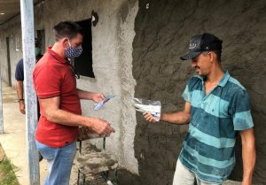 Durante a visita, o prefeito Francisco Lúcio Meira Santos aproveitou para distribuir máscaras para os profissionais envolvidos nas obras e populares da comunidade.