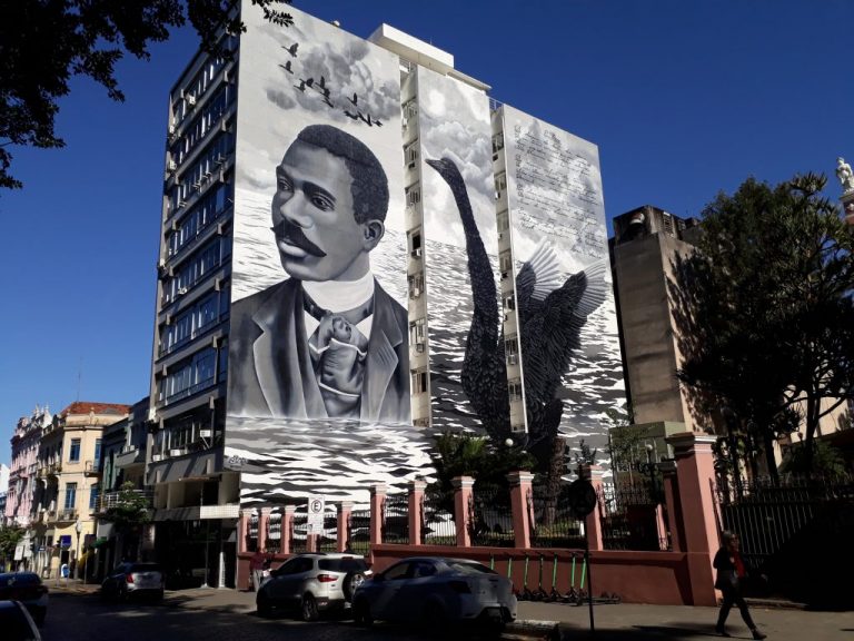Então, para nossa felicidade e orgulho, a capital catarina fica mais bonita, com o painel da nossa querida Antonieta de Barros no Edifício Atlas; pouco menos de 200 metros dali, ela poderá ‘avistar’ o rosto do poeta Cruz e Sousa (1861-1898), no mural do Museu Histórico de SC, na frente da Praça XV, que foi concluído em junho. Mais adiante um pouquinho, o mural de Franklin Cascaes, o escritor que tornou mágica a nossa Ilha. Nossos grandes nomes guardando a nossa cidade e lembrando que a obra deles, obras-primas, estão aí para que a recriemos, para a gente ler e indicar e, assim, tornar mais vivos esses personagens monumentais.