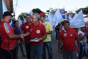 Candidatos à deputado estadual e federal, Zé Raimundo e Waldenor Pereira, respectivamente, em atividade de campanha.