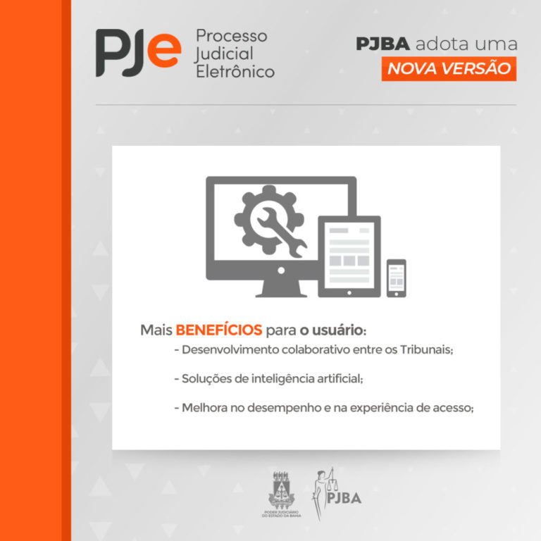 A partir desta segunda-feira (22), o Poder Judiciário da Bahia (PJBA) adota a versão mais atualizada do sistema do Processo Judicial Eletrônico (PJe). Novas funcionalidades serão incorporadas, além da possibilidade de desenvolvimento colaborativo entre Tribunais, soluções de inteligência artificial e melhorias no desempenho e na experiência de acesso.