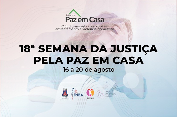 Estão a todo o vapor os trabalhos no Poder Judiciário da Bahia (PJBA) para a XVIII Semana da Justiça pela Paz em Casa, que começa nesta segunda-feira (16). “O novo crime de perseguição” e os “Os desafios do Judiciário diante do machismo estrutural” são os temas das palestras virtuais realizadas na tarde desta segunda, às 14h.