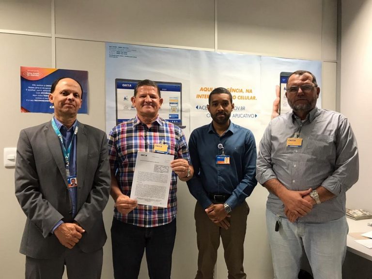 O Prefeito de Caculé, Beto Maradona, assinou nesta terça-feira (14/01) na Superintendência Regional da Caixa Econômica Federal em Vitória da Conquista contrato de repasse para construção e melhorias na entrada da cidade, BA-617 Caculé/Ibiassucê. Estiveram Presentes no ato os Subgerentes/Caixa Claudeir Pereira, o Coordenador de Projetos Herbert e o Gerente de Convênios da Prefeitura Cláudio Hoffmman. Os recursos na ordem de aproximadamente seiscentos mil reais são oriundos de Emenda Parlamentar do mandato do Deputado Federal Paulo Azi. Caculé avançando cada vez mais.