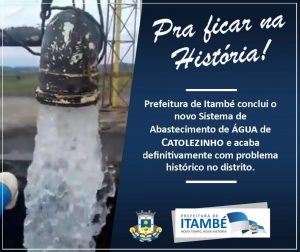 Missão dada é missão cumprida. No início de 2017, a atual gestão municipal de Itambé assumiu o compromisso de acabar com o problema histórico da falta de água no distrito de Catolezinho.