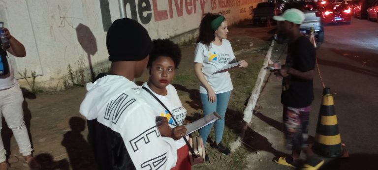 No último fim de semana, o Corra pro Abraço Vitória da Conquista realizou uma busca ativa no entorno do Parque de Exposições Teopompo de Almeida enquanto acontecia o Festival de Inverno Bahia 2023. A equipe do Programa procurou dialogar principalmente com os trabalhadores e trabalhadoras presentes no local, como ambulantes, flanelinhas e pessoas em situação de rua.