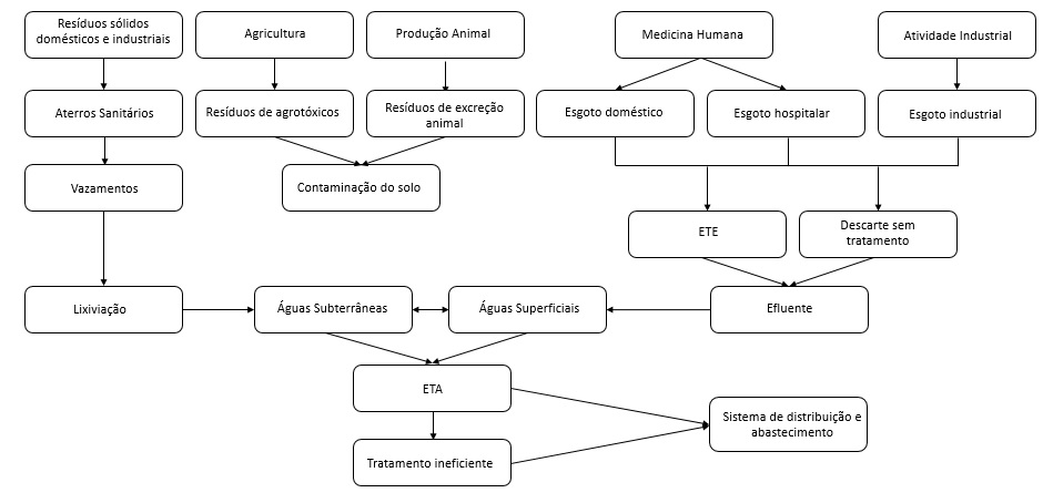 O descuido quanto ao descarte irregular de remédios é uma das principais causas do aparecimento desse tipo de contaminante na água. Despejar produtos vencidos na pia ou em vasos sanitários, por exemplo, faz com que as substâncias cheguem até rios e mananciais. Embora a mudança de alguns hábitos seja essencial para não acentuar ainda mais o problema, causas naturais também contribuem para essa contaminação. Afinal, parte do remédio que tomamos não é metabolizada pelo nosso organismo, sendo eliminada via urina, fezes ou suor. Situação semelhante ocorre quando tomamos banho após a utilização de protetor solar, ocasião em que o produto é eliminado pelo ralo, podendo chegar tanto a águas superficiais como subterrâneas. Por sua vez, fármacos utilizados na agropecuária também são capazes de contaminar os recursos hídricos.